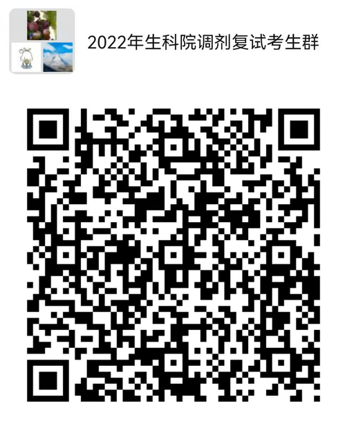 (4) 为方便信息沟通,请确认参加调剂复试的考生进入微信群(二维码如下)。考生进群时,请务必备注专业-姓名(如生物学-张三),修改群昵称为“专业-姓名”。同时,请各位考生务必保持手机等联系通道畅通。