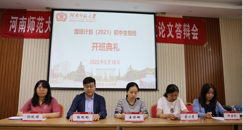 2022年5月18日上午,“国培计划(2021)”县级骨干教师、培训讲师团队研修和河南省薄弱环节改善省级骨干培育项目初中生物班“云开班”典礼在生物西楼206会议室举行。生命科学学院副院长姜丽娜、党政办公室主任杨刚刚以及班主任团队出席。开班仪式由杨刚刚主持。