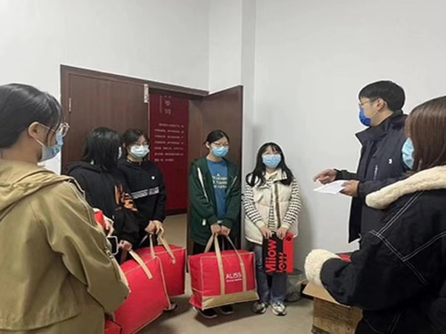 仪式伊始,2021级辅导员牛国衡宣读“冬补”受助学生名单,以及本次所补贴的具体物资。同时,他指出本次冬季实物补助既是学校和学院对学生的一种无言的关怀,也是学校和学院对学子的殷切希望,并转达学院党委副书记朱国超对受助学生的关心和期望。朱国超勉励受助学生要心怀感恩,乐观面对生活中的困境,不断锤炼本领,强化责任意识和使命担当。随后,老师们一一将棉被、棉衣等物品发放给受助学生,从细微之处让学生们感受到温暖。受助学生拿到冬补物品时都十分感动,表示非常感谢学院和老师们的关心,自己一定会努力学习,自强不息,用实际行动来回报学校、回馈社会。