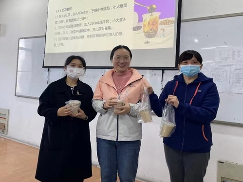 活动中,女教职工在实验室老师和志愿学生的引导下,按照奶茶的制作步骤,熬茶、冷却、浸茶、添奶、复煮,在制作过程中,老师们积极细心、耐心配合,享受制作过程,感受岁月美好,活动过程轻松愉快,阵阵轻快的笑声在生命科学学院飘荡成歌。2023年,生命科学学院从春天的第一杯奶茶开始,庆祝三八妇女节,迎接温馨和煦、春意阑珊的春天。
