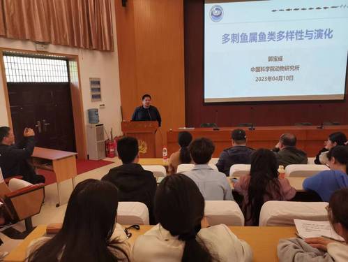 郭宝成以生命起源演化、鱼类多样性形成为切入点,结合团队近几年的最新科研进展,从基因渐渗与多刺鱼表型趋同、淡水适应的遗传基础、中国多刺鱼及其演化和多刺鱼属性染色体演化等三个方面阐明了多刺鱼属物种形成与演化的遗传基础。