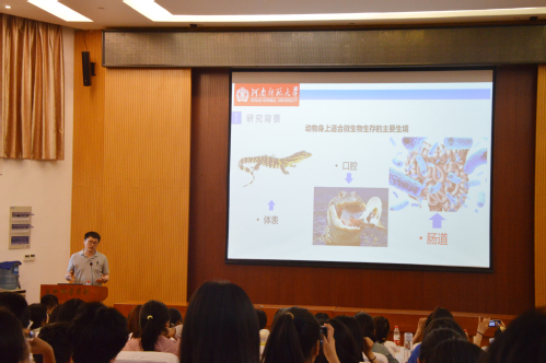 5月13日上午,应生命科学学院邀请,南京师范大学屈彦福教授莅临我校讲学,并在生物报告厅作题为“爬行动物与微生物的系统进化”的学术报告。学院师生200余人参加。报告由学院副院长于飞主持。