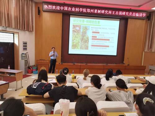 5月17日下午,中国农业科学院郑州果树研究所王志强研究员应邀来我校讲学,并在生物报告厅作题为“桃树抗蚜基因发掘与品种创制”的学术报告。学院师生100余人参加。报告由生物科学系李明军教授主持。