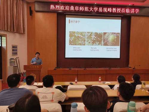 易现峰讲解了单宁对花鼠空间记忆能力及贮食行为的影响,阐释了单宁调控鼠类空间认知和贮食行为的机制。易现峰课题组在动植物互作领域的工作极大地推动了森林间幼苗的更新以及保护物种多样性的研究,为在微生物层次了解动植物互作过程开辟了新途径。