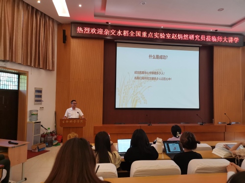 第一场报告中,赵炳然研究员结合自身与袁隆平院士工作、生活、学习中的点点滴滴,围绕“两碗饭的故事”“夹着尾巴做人”“成功的秘诀”“我要打球去了”“老师给我颁奖”五段小故事,向大家展现了袁隆平院士的宽广胸怀与崇高风范。同时,赵炳然也鼓励大家向袁隆平院士学习,心存大志,持之以恒,永怀感恩,成就梦想。