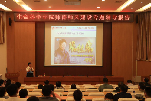 为进一步加强师德师风建设,增强教师立德树人的初心使命,增强教师的凝聚力和战斗力。9月12日下午,生命科学学院在生物报告厅组织开展师德师风建设专题第二场辅导报告。学院党委特邀“全国巾帼发明家创业奖”、“全国模范教师”、“全国三八红旗手”国家级教学名师渠桂荣教授作专题辅导。生命科学学院全体教职工参加会议,会议由学院党委书记王毅主持。
