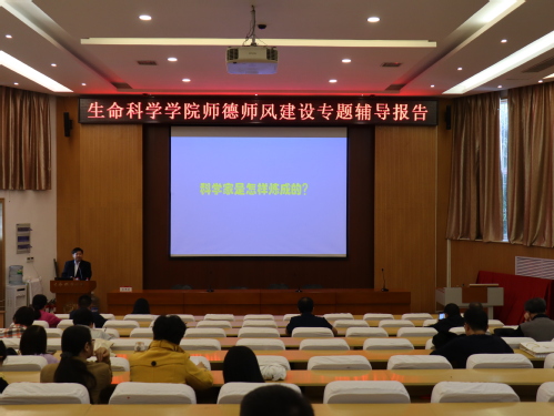 本次专题辅导报告进一步强化了我院的师德师风建设,促进全体教师和科研工作者心往一处想,劲往一处使,共同去建设一个更加团结的生科、一个更加可亲的生科、一个更加创新的生科、一个更加卓越的生科!