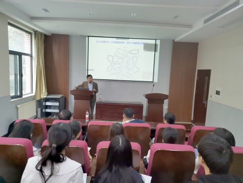 10月16日,应生命科学学院邀请,南京大学吴稚伟教授在生物东楼学术报告厅作题为“CD4特异性VHH单克隆抗体高效、广谱抑制HIV-1及作用机制”的学术报告,报告会由生命科学学院院长余国营主持,全校师生100余人参加。