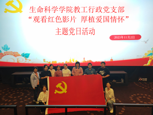 为扎实推进学习贯彻习近平新时代中国特色社会主义思想主题教育,弘扬伟大抗美援朝精神,赓续红色基因,汲取奋进力量,11月2日下午,生命科学学院教工行政党支部组织开展“赓续红色基因 厚植爱国情怀”主题党日活动,观看电影《志愿军:雄兵出击》,缅怀历史,致敬英雄。