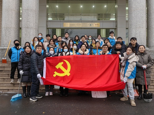 连续多日的大雪给道路交通及师生出行带来诸多不便。为防止积雪成冰,确保出行安全,12月14日下午,生命科学学院党委号召师生党员共同清扫生物西楼、生物东楼楼前及道路积雪。