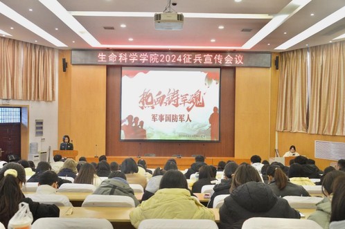 为响应国家征兵政策,深入贯彻习近平强军思想,鼓励大学生携笔从戎,应征入伍,12月25日下午,生命科学学院于生物报告厅开展2024年征兵宣传会议,会议邀请党委学工部宣讲团为我院开展政策宣讲,学院辅导员各年级本科生共计150余人参与此次会议。会议由2021级辅导员牛国衡主持。