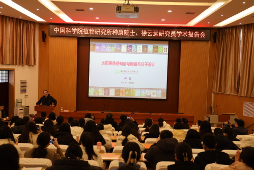 1月8日上午,中国科学院院士、国际欧亚科学院院士、中国科学院植物研究所研究员种康做客生命科学学院“2024生命之光”前沿讲坛,在生物报告厅作题为“水稻寒害感知信号网络与分子设计”的学术报告。报告由校学术委员会主任陈广文教授主持,生命科学学院党委书记王毅、院长余国营、副院长于飞等150余人参加。
