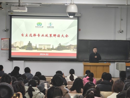 为进一步促进学生专业与兴趣协调发展,更好地调动学生学习的自觉性与积极性,高质量推进时代新人培育工程,2月26日,生命科学学院于新五五四楼召开2024年自主选择专业政策解读大会。生命科学学院党委副书记朱进、副院长陈建军、各专业系主任及2023级全体同学共同参会。会议由生命科学学院2023级辅导员老师刘世学主持。