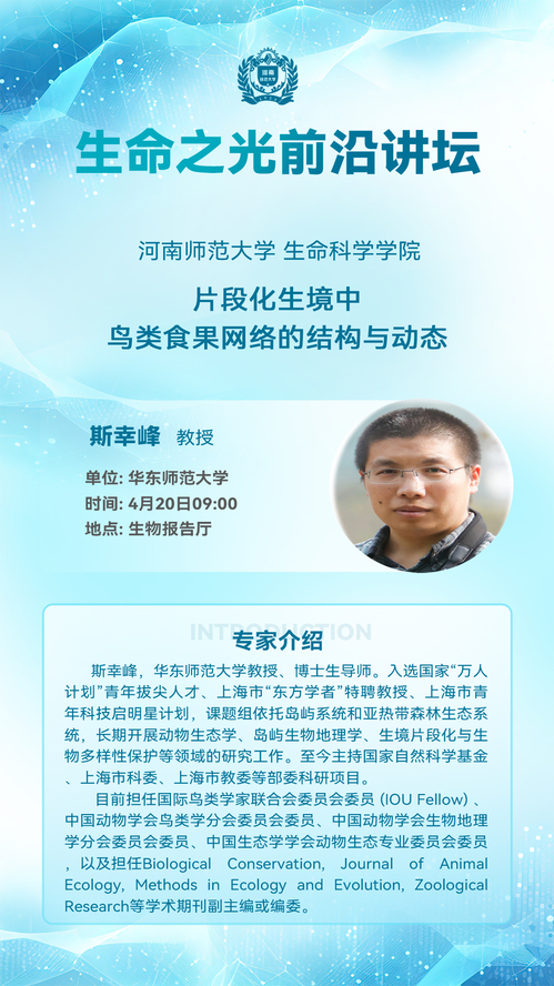 学术预告----华东师范大学斯幸峰教授应邀做客生命之光前沿讲坛