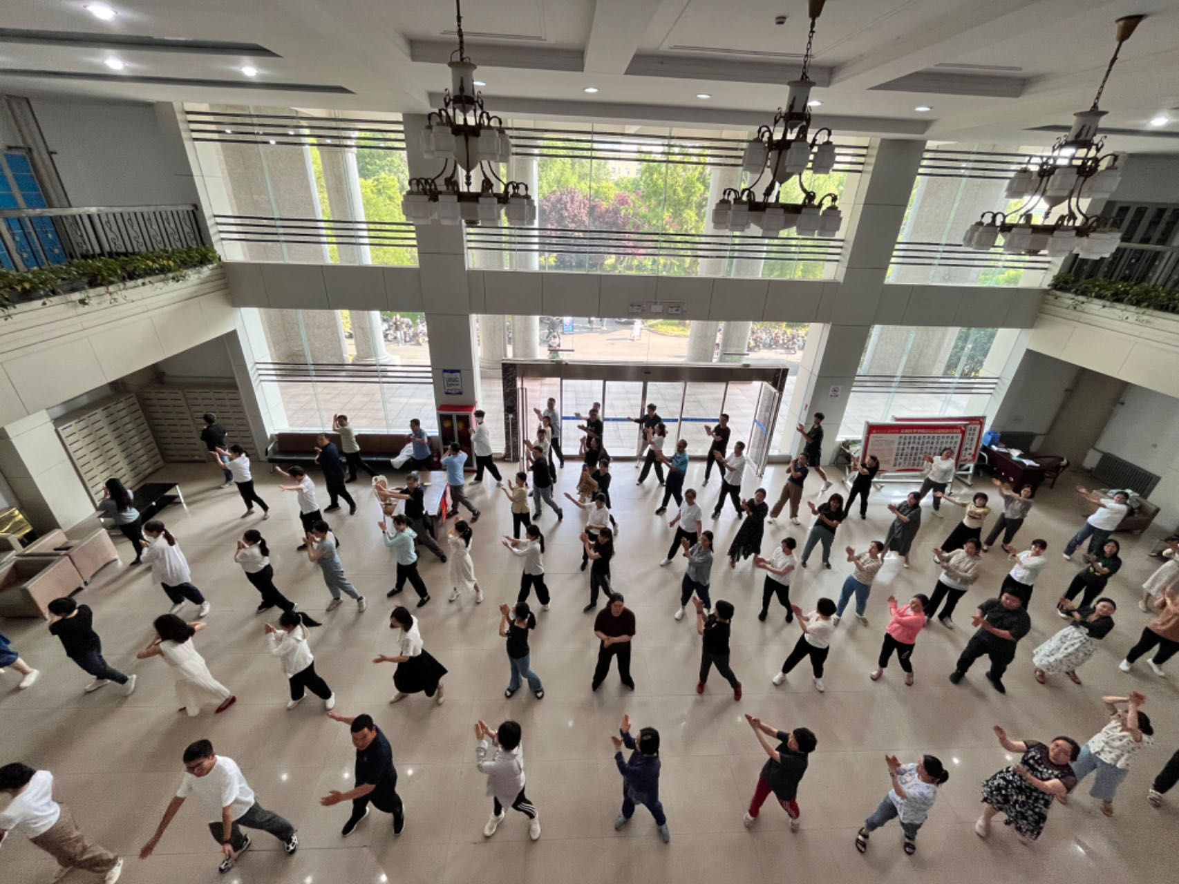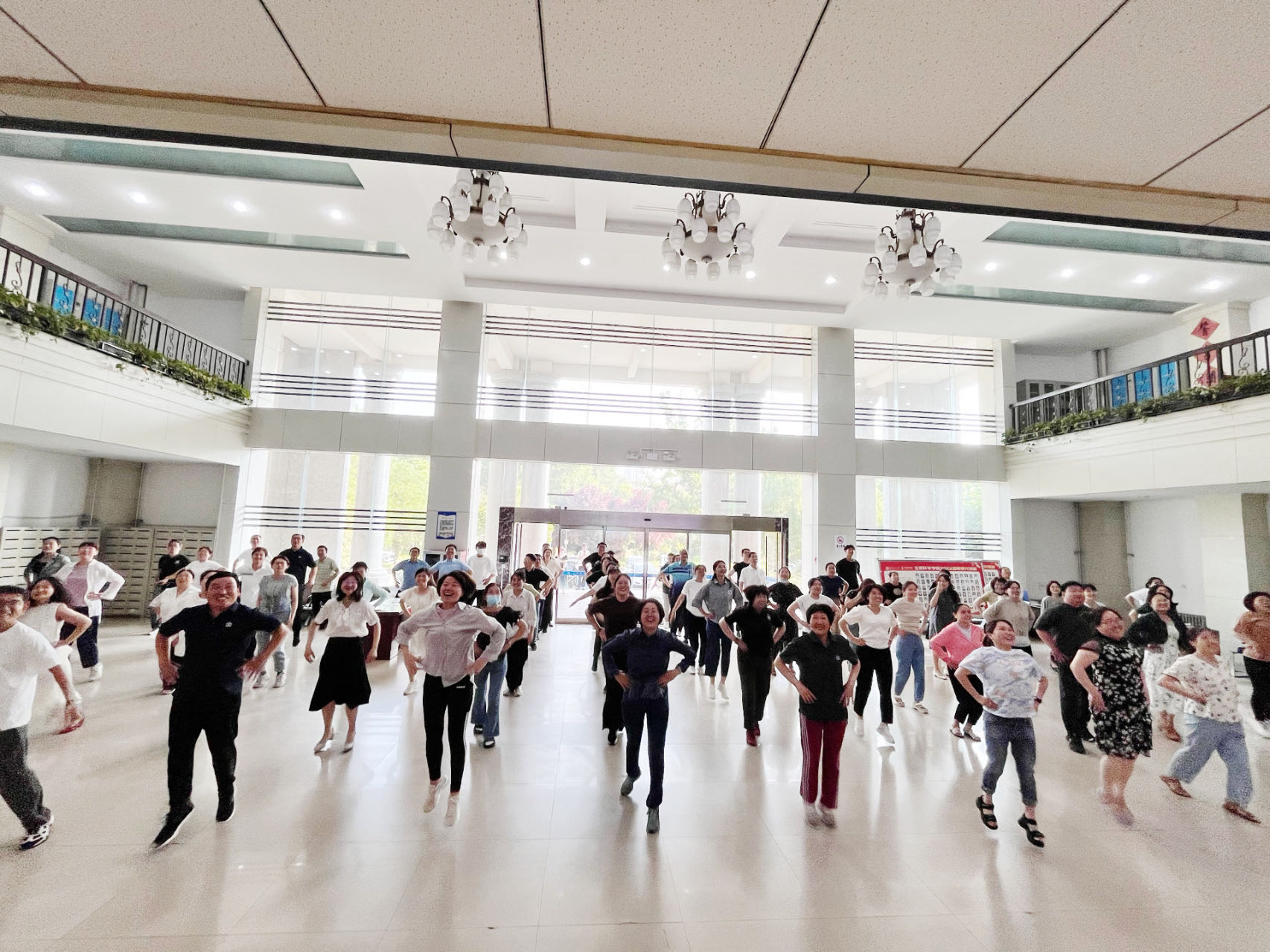 为贯彻落实习近平总书记关于全民健身、健康中国的重要论述精神,增强教职工强身健体意识,提升教职工身心健康指数,营造健康和谐、积极向上的工作氛围。5月27日,生命科学学院工会于生物西楼一楼大厅组织开展“广播体操天天做,全民健身动起来”健身操比赛,学院工会全体会员积极参与。