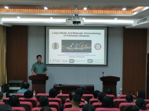 6月24日,应生命科学学院邀请,美国匹兹堡大学Yuanpu Di教授莅临我校,作题为“Lung Cellular and Molecular Immunobiology ofPulmonary Diseases”的学术报告,报告由生命科学学院院长余国营主持,学院师生100余人参加。