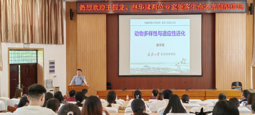 6月24日,应生命科学学院邀请,武汉大学赵华斌教授莅临我校,作题为“动物多样性与适应性进化”的学术报告,报告由生命科学学院副院长于飞主持,学院师生100余人参加。
