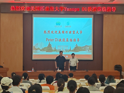 随后, Yuanpu Di教授介绍了美国匹兹堡大学的基本情况,并结合多个方面展示了匹兹堡大学的作为国外高校的教学水平、教学质量及教学成果。他重点强调了匹兹堡大学的教学模式的创新内容、创新关键点和该模式的优点。并指出,通过全面考察学生的综合素质,在促进高质量水平学习的同时也加强了学生的自主思考能力和沟通表达能力,有利于学生的个人发展。Yuanpu Di教授就此也非常热情地邀请同学们到匹兹堡大学深造,期待同学们的到来。
