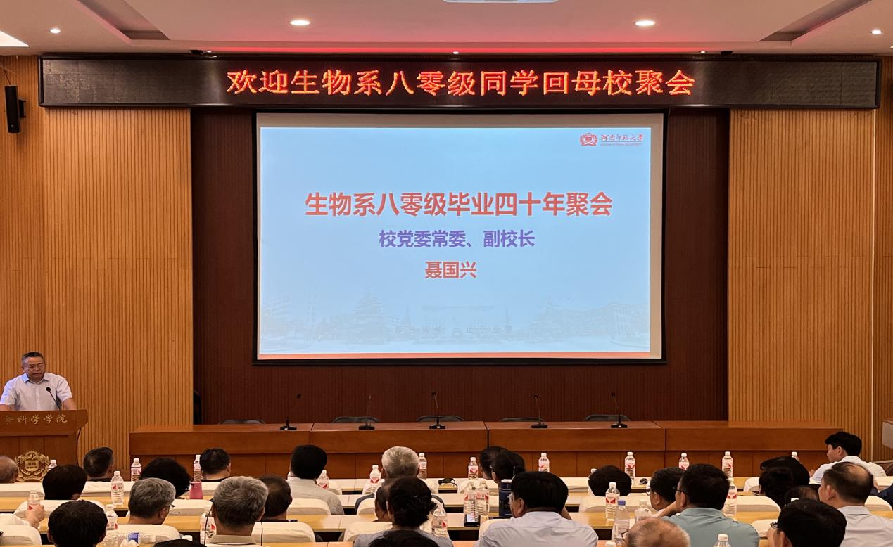 四十年同窗情深,四十年归来依旧。8月11日上午,生命科学学院1980级校友在生物报告厅举行毕业四十年师生聚会。校党委常委、副校长聂国兴,生命科学学院党委书记宋京双,时任任课教师卢龙斗、张红绪、李庚全以及从国内外赶回母校的近90名校友参加此次聚会。