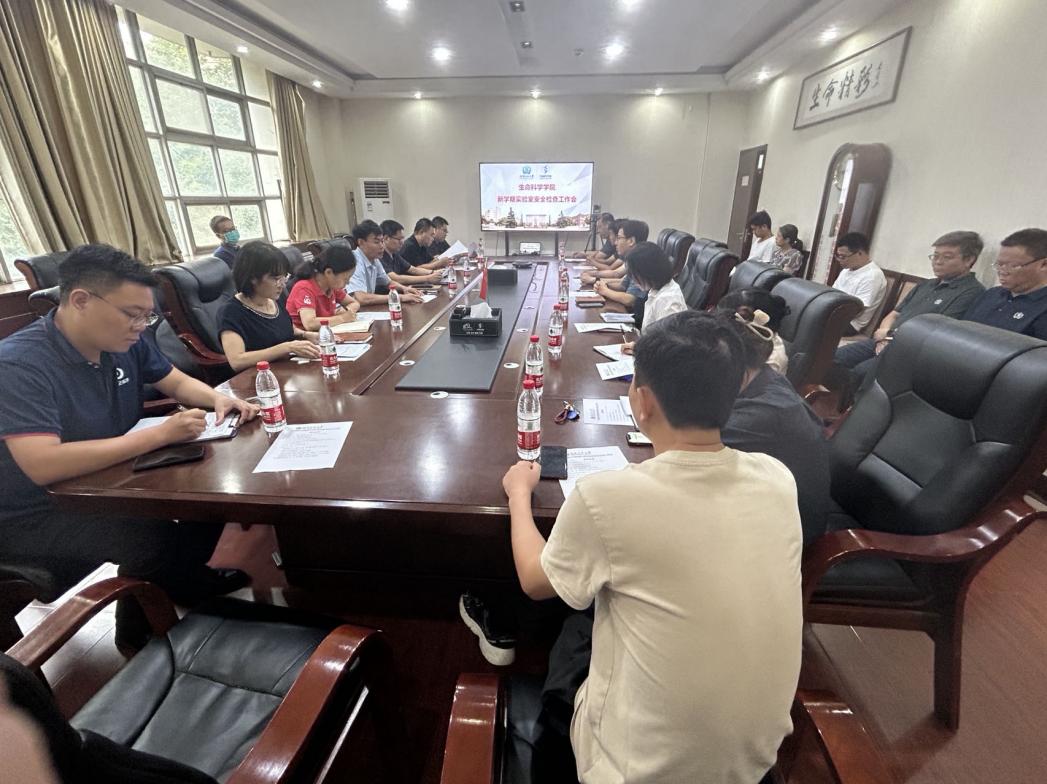 为切实加强安全管理,落实落细具体举措,彻底排查安全隐患,确保学院教学、科研活动正常进行,9月10日上午,生命科学学院在生物西楼212会议室召开安全工作部署会,生命科学学院党政领导班子参会,会议邀请国资处安全管理科科长丁倩、保卫处消防管理科科长程习伟、蔡鹏以及第三方检查河南世纪拓华环保科技有限公司人员出席会议,学院安全工作小组全体人员参加,会议由副院长宋军丽主持。