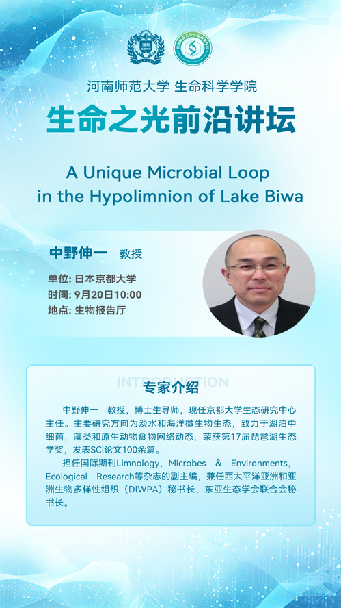 学术预告—— 日本京都大学Nakano Shinichi(中野伸一)教授将应邀做客生命之光前沿讲坛