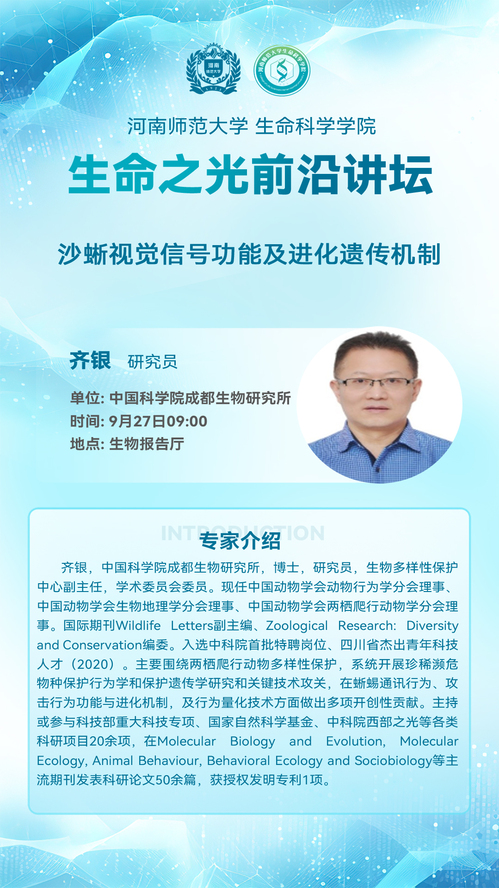 中国科学院成都生物研究所齐银研究员将应邀做客生命之光前沿讲坛