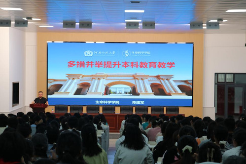 会议伊始,陈建军以“多措并举提升本科教育教学”为主题,从学院基本概况、人才培养理念、人才培养举措、人才培养成效、特色与亮点、问题与展望六个方面,详细阐释了学院各专业的基本情况及发展前景。针对不同专业的学生,陈建军分别提出了针对性的发展方向和目标——生物工程、生物技术专业的同学应加强理论研究并将实践相结合,努力成为应用型人才,促进研究成果的转化;生物科学专业的同学应扎实掌握核心课程、提升教师技能素养、广泛涉猎相关领域,成为综合性人才;生态学专业的同学要适应快速发展的生态学科研与应用需求。会议最后,陈建军给同学们解读了转专业的流程、条件、优劣比较以及可能面临的挑战,并倡导同学们要明确自己的目标,不随波逐流,做好大学四年的规划。