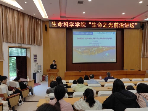 10月15日上午,应生命科学学院邀请,中国科学院合肥物质科学研究院马坤副研究员莅临我校,作题为“趋磁细菌Mms6调控生物矿化的机制以及生物医学应用开发”的学术报告,学院师生百余人参加。报告由学院副院长于飞主持。
