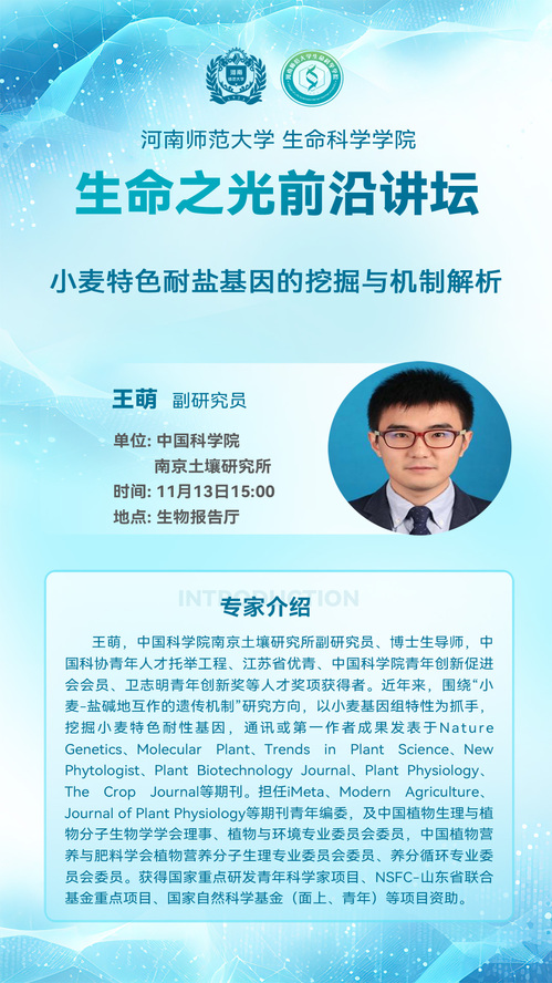 中国科学院南京土壤研究所博士生导师王萌将应邀来我校讲学