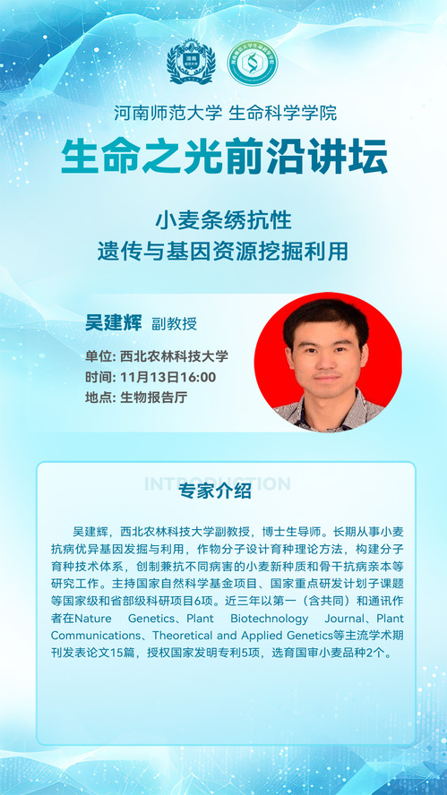 西北农林科技大学博士生导师吴建辉将应邀来我校讲学