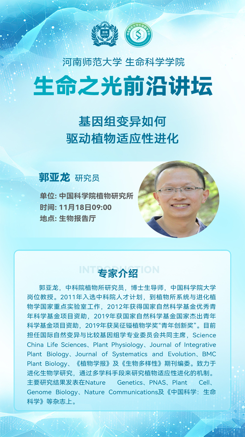 中国科学院植物研究所郭亚龙研究员将应邀来我校讲学