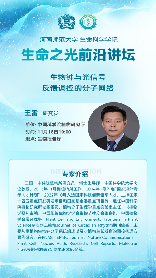 中国科学院植物研究所王雷研究员将应邀来我校讲学