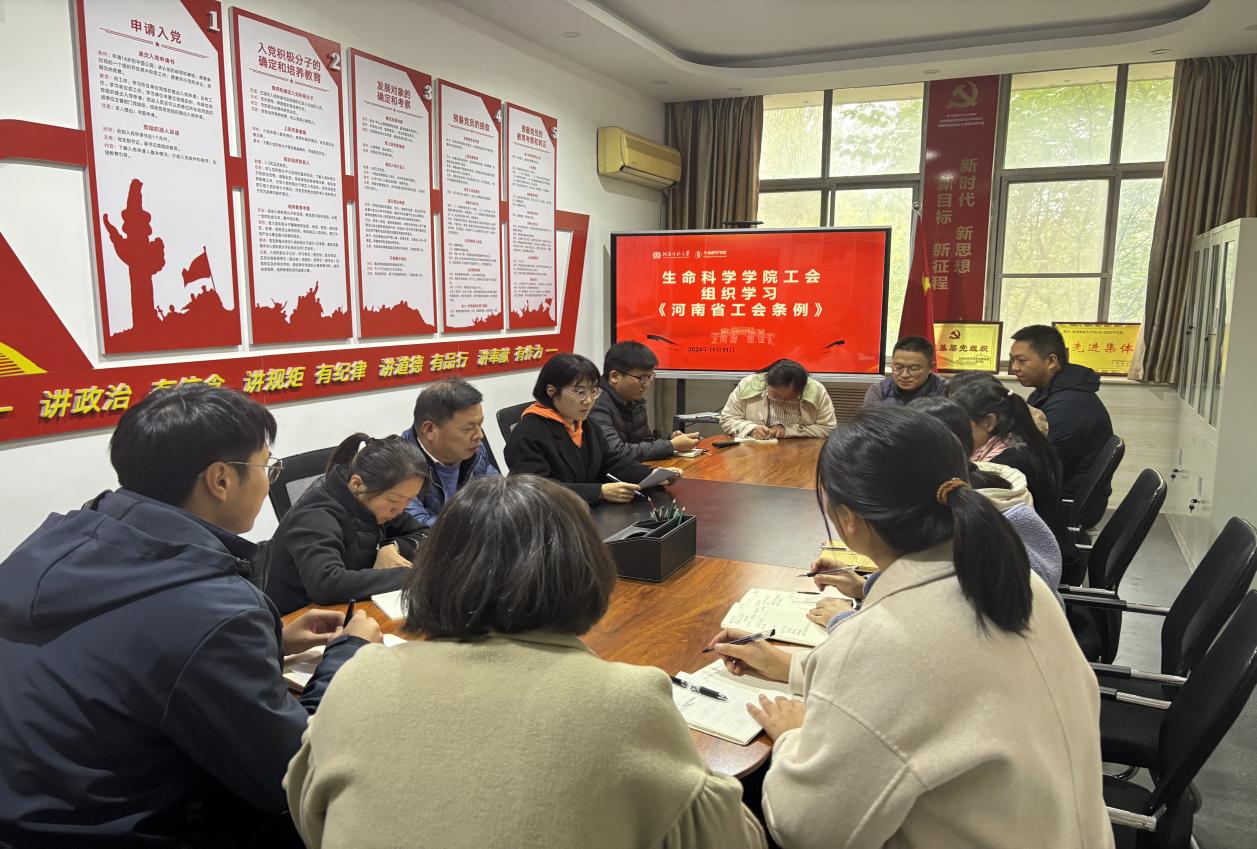 为保障工会依法行使权利和履行义务,发挥工会在推进中国式现代化建设事业中的作用,推进学院工会各项工作高质量发展,生命科学学院工会于11月11日在生物西楼208会议室组织专题学习会,集中学习新修订的《河南省工会条例》,学院工会委员和小组长参加学习会。