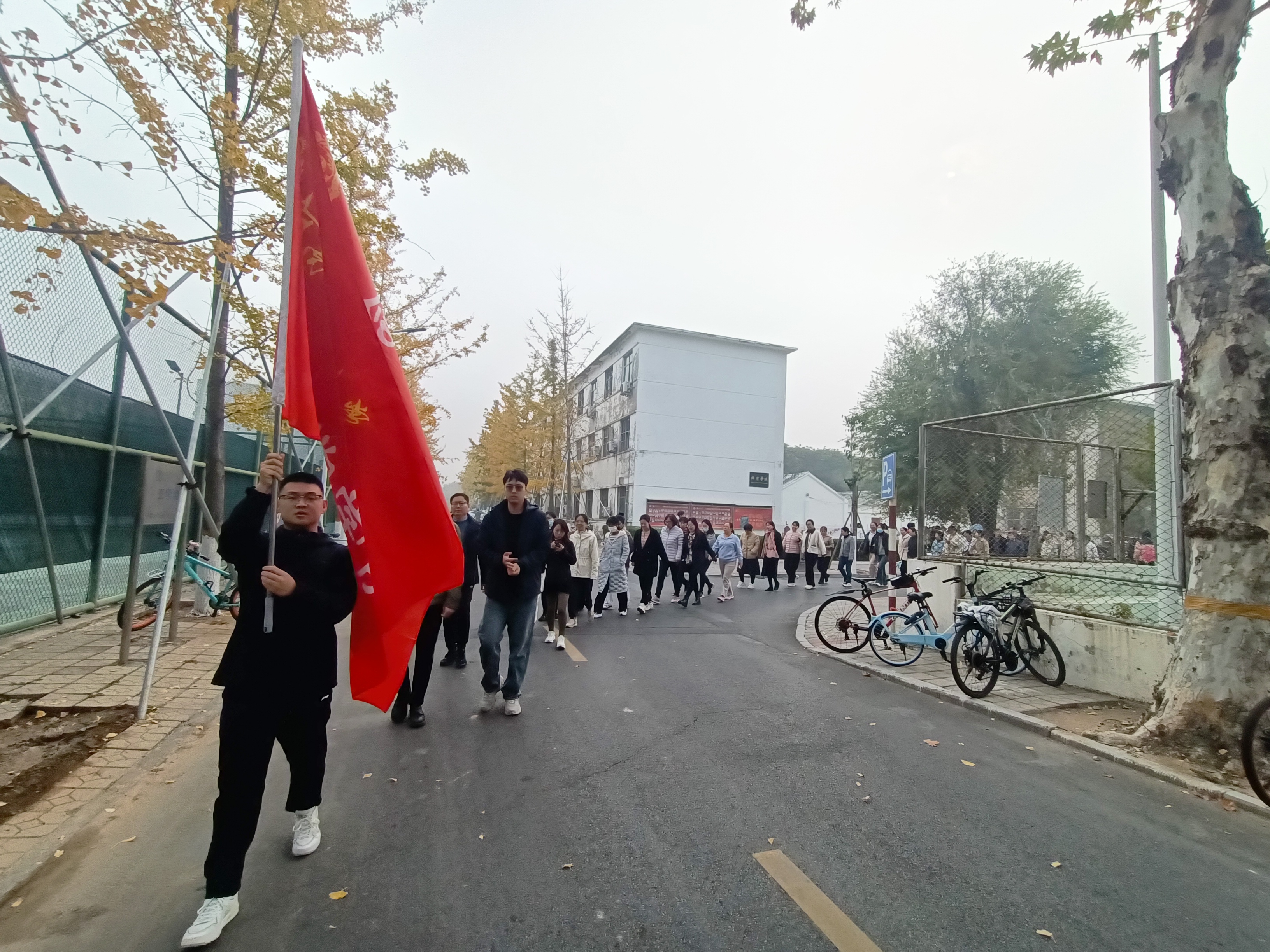 参加活动的教职工在生物西楼前集合完毕,学院工会主席宋军丽详细介绍了此次健步走活动的基本规则、注意事项和路线。随后,学院党委书记宋京双宣布“健步走”活动正式开始。教师们迈着矫健轻快的步伐,宛如一条充满活力的长龙,踏上了这场充满活力与激情的健步走征程。一路上,大家边走边交流,始终保持着健步的热情和高昂的斗志。在健步走的过程中,有的老师一边欣赏着沿途的风景,享受着运动带来的快乐;有的老师一边走一边交流着教学心得和生活趣事,欢声笑语回荡在路途中;有的老师则步伐坚定,目光专注,不断挑战自己的体能极限,每一位老师都在用自己的行动诠释着坚持和毅力的含义。