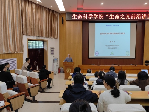 11月18日上午,应生命科学学院邀请,中国科学院植物研究所郭亚龙研究员做客“2024生命之光前沿讲坛”,在生物报告厅作题为“基因组变异如何驱动植物适应性进化”的学术报告,学院师生150余人参加。