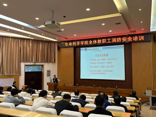 为深入推进生命科学学院实验室安全和消防安全工作,贯彻落实学校关于119消防宣传月的活动要求,11月26日下午,生命科学学院在生物报告厅开展全体教职工消防安全培训,此次培训会由河南省消防协会杜通教员主讲。