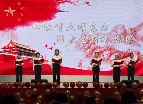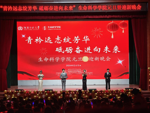 节奏欢快、动感十足的舞蹈《Black Mamba》拉开了晚会的精彩序幕,瞬间点燃了现场师生们的激情与活力。晚会伊始,院长余国营发表致辞,他向全体师生致以诚挚的问候,同大家一起回顾了2024年学院取得的各项成绩,鼓励全体师生要脚踏实地、永葆初心,以严谨治学的态度追求卓越,共同绘制更加美好的未来蓝图。一曲和谐悠扬、婉转动听的器乐合奏《弦笛合鸣》将晚会逐渐推向高潮,诗歌朗诵《七秩有五耀东方,师大生科育栋梁》深情讲述了新中国成立75周年来的辉煌历程以及学院在致力于为党育人、为国育才的过程中所取得的优异成绩,歌曲、舞蹈、小品、朗诵、汉服走秀等一系列节目营造出热情洋溢的现场氛围。晚会尾声,全体辅导员老师倾情合唱的歌曲《绽放青春》洋溢着青春的激情与梦想,传递着他们对学生的深切关爱与殷切期望,为整场晚会画上了圆满的句号。