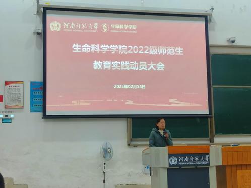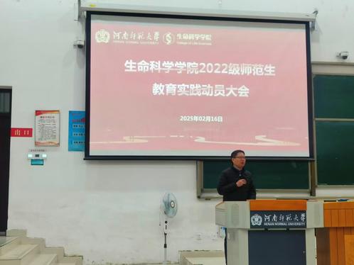 为切实做好师范生教育实践工作,增强师范生教育实践效果,引导学生树立正确的实习观念,2月16日下午,生命科学学院在文昌楼102教室召开2022级师范生教育实践行前教育大会。学院党委副书记朱进、副院长陈建军、教育实践全体指导教师、2022级生物科学专业360余名学生参加会议。会议由2022级辅导员谢文婕主持。