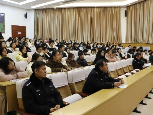 为构建学院“大安全”工作格局,以系统思维和整体观念谋划安全工作,维护好正常的教学、生活、工作秩序,为新学期安全教育工作开好头、起好步,2月20日晚,我院邀请新乡市公安局牧野分局电侦大队副大队长靖士超、政保大队副大队长马东海、网安大队副大队长高翔、东干道派出所副所长马贯忠、党委保卫部公共安全科副科长靳龙,为学院开展安全教育宣讲会,“一站式”社区负责人、全院师生共200余人参加。会议由学院党委副书记朱进主持。