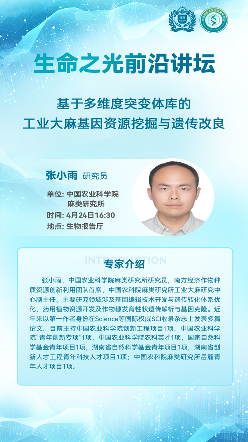学术预告——中国农业科学院麻类研究所张小雨研究院应邀来我院讲学