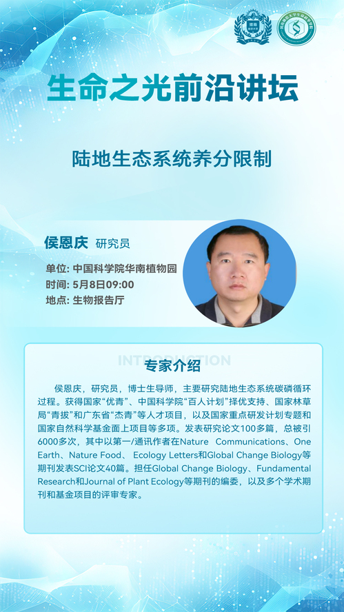 学术预告——中国科学院华南植物园侯恩庆教授应邀来我院讲学