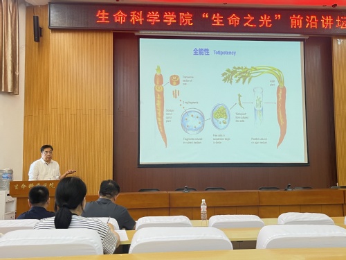 5月21日,应生命科学学院邀请,复旦大学杨继教授做客“生命之光前沿论坛”,作题为“植物开放式生长和可塑性发育的特点、机制及意义”的学术报告。报告由生命科学学院副院长于飞主持,学院相关师生参加。
