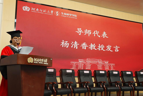 导师代表杨清香教授回顾了同学们的成长历程,并向全体毕业生们赠语以作共勉:以明德博学筑基,以生命科学践行,常读书运动修身,做德才兼备青年,她还希望同学们能始终保持积极学习和探索的好奇心,敢于抓机会、敢于去实践。