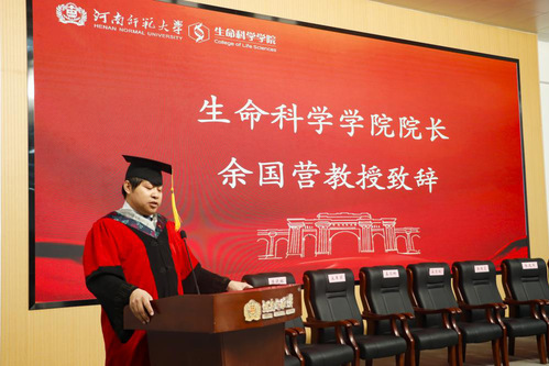 余国营代表学院全体教师向即将毕业的同学们致以衷心的祝贺,他寄语全体毕业生“适应不是被动妥协,而是主动迭代”,希望同学们像细胞一样动态适应,像干细胞一样保持可塑性,像免疫细胞一样学会在挫折中掌握“获得性记忆”。
