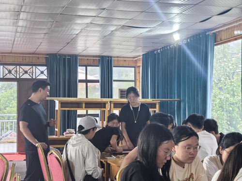 下午,同学们齐聚实习基地广场和教室,全神贯注地投入到课程考核、动植物标本制作与实习报告撰写中。课程考核现场,老师们随机展示采集到的动植物样本,要求同学们快速准确说出其所属类别、主要特征及生态习性,全面检验同学们的学习成果;在标本制作考核中,大家精益求精,力求将每一只动物的姿态、每一株植物的形态完美呈现,老师们对照评分标准,仔细检查同学们制作的动植物标本;撰写报告时,大家细致梳理实习期间的观察数据与心得体会,结合专业知识进行深入分析。老师们在各个小组之间耐心指导,帮助同学们完善标本与报告,确保野外实习的高质量完成。