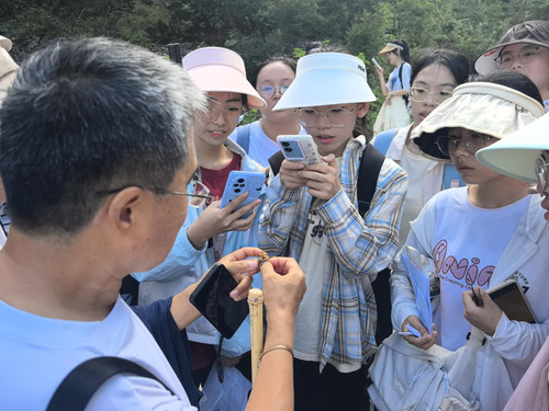 动物组老师带领同学们踏入山林,指导大家运用第一天所学的器具使用方法,在林间、草丛寻找动物踪迹,仔细观察昆虫形态结构、生活习性,利用捕虫网捕捉不同种类昆虫,借助望远镜观察鸟类飞行姿态与栖息特征等细节。对于珍稀动物,老师们从生态环境保护角度,深入浅出地讲解其生存策略和在生态系统中的地位。