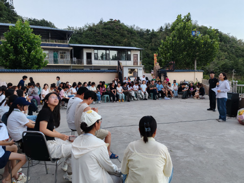 晚上,全体师生在实践基地举办野外实习总结大会暨青春无悔主题篝火晚会,共同庆祝本次野外实习圆满收官。在总结大会上,指导老师对本次野外实习进行了全面回顾,详细总结了实习过程中的各项成果与经验。随后,篝火晚会正式拉开帷幕,同学们通过舞蹈、歌曲、朗诵等多种形式,展现了青春的活力与风采,晚会现场气氛热烈,师生们围坐在一起,分享野外实习中的趣事与感动瞬间,共同享受这场青春的盛宴。
