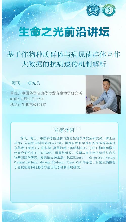 学术预告——中国科学院遗传与发育生物学研究所贺飞研究员应邀来我院讲学