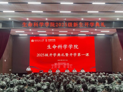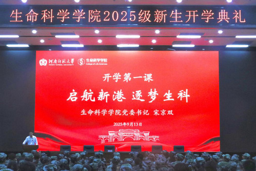 典礼在激昂的校歌声中告一段落。最后,学院党委书记宋京双为全体新生讲授题为“启航新港,逐梦生科”的开学第一课。他结合中国人民抗日战争暨世界反法西斯战争胜利80周年纪念活动及习近平总书记对青年的嘱托,勉励同学们心怀“国之大者”,将个人理想融入民族复兴伟业;拥抱“创新港精神”,勇攀科学高峰;夯实“学业根系”,培养自主学习能力;砥砺“科学品质”,恪守学术道德,努力成长为德才兼备的生命科学领域栋梁之材。