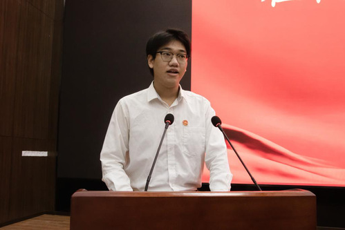 在校生代表张宗昆同学分享了他从志愿服务、科研探索到知行合一的成长经历,鼓励新生赓续红色血脉、勇于突破自我、践行“厚德博学,止于至善”,在奉献与实践中书写多彩绚烂的青春篇章。